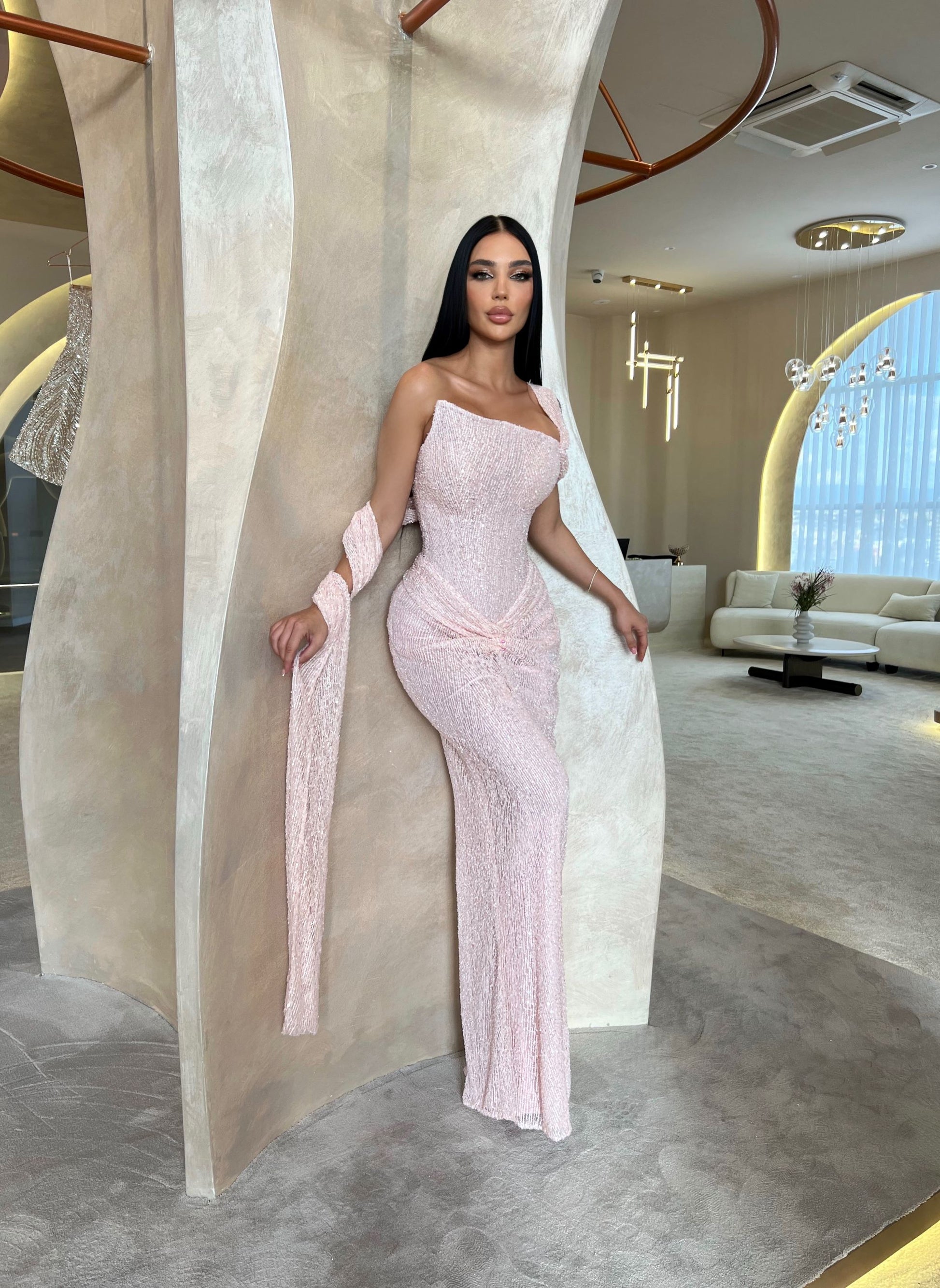 - One-shoulder design